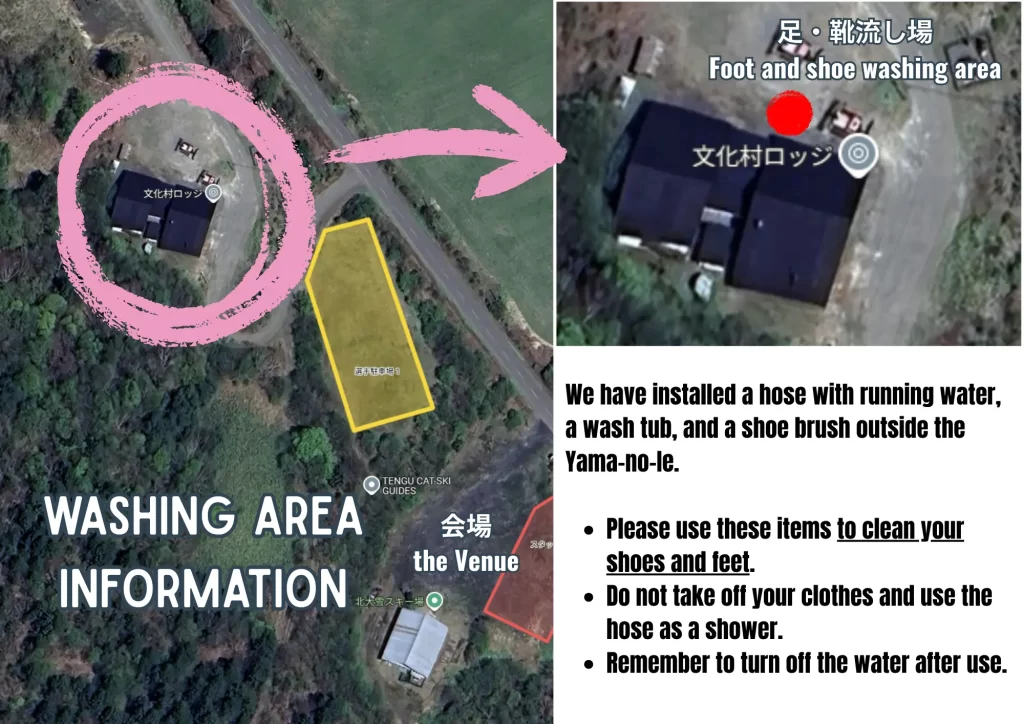 - The red area (inside the venue) is for staff parking only. Participants are prohibited from parking in this area.