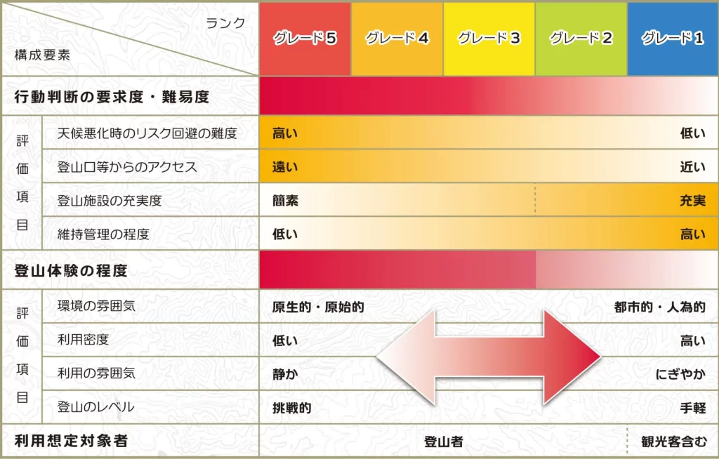 大雪山グレード(大雪山国立公園連絡協議会 webサイトより転載) たとえば、例年登山用のレインウェアではないタウンユースの簡易雨具で参加しようとする方がいらっしゃいますが、それは自殺行為に等しく容認できません。できるだけ軽装で身軽に走りたいという気持ちは理解できますが、参加者の安全確保のために必携品を設定します。内容は昨年大会に準じるものになる予定です。ルールのページを参照ください。必携品不所持は失格を含むペナルティの対象です。